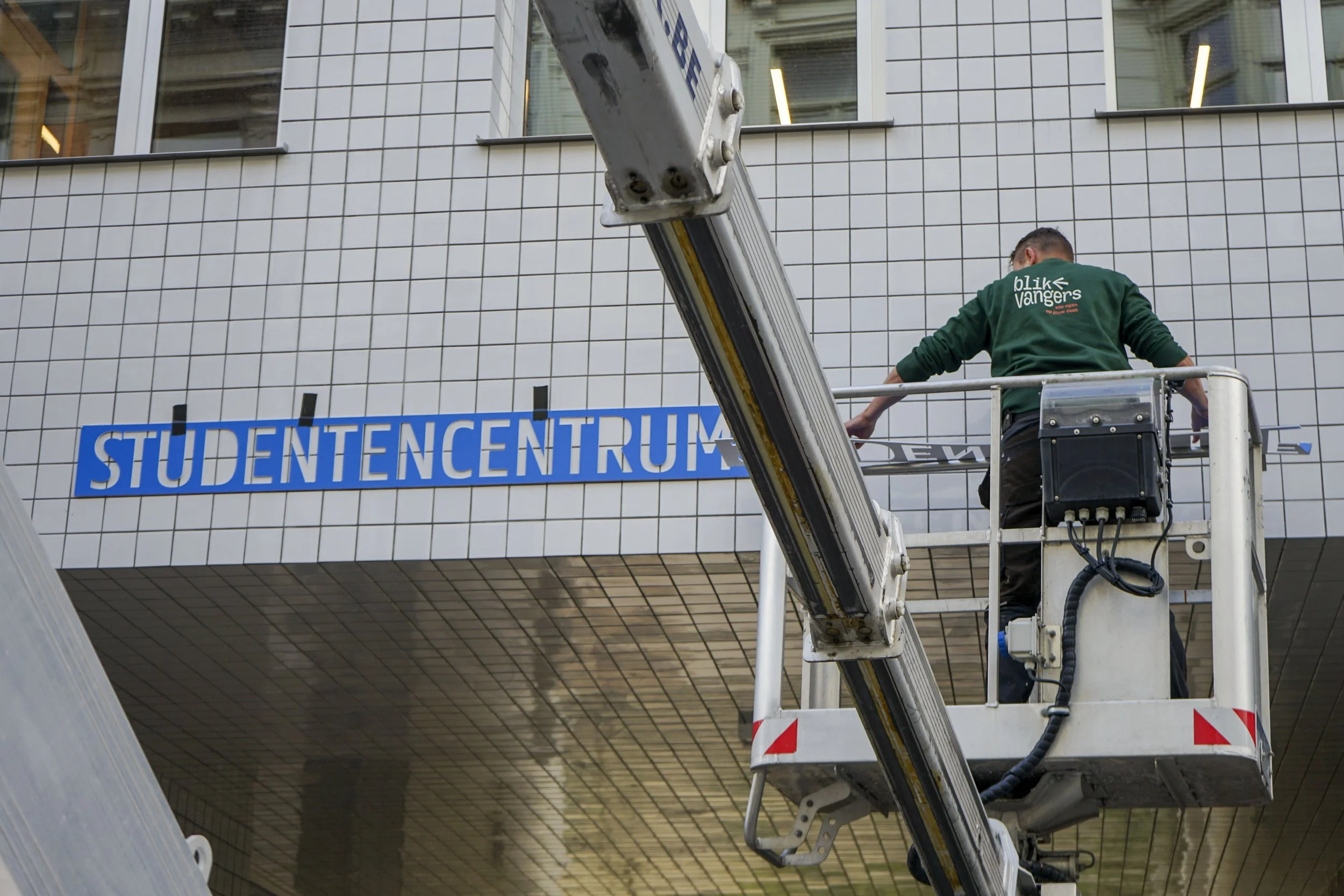 Het resultaat is een heldere, tijdloze gevelsignalisatie die perfect past binnen de identiteit van de universiteit.